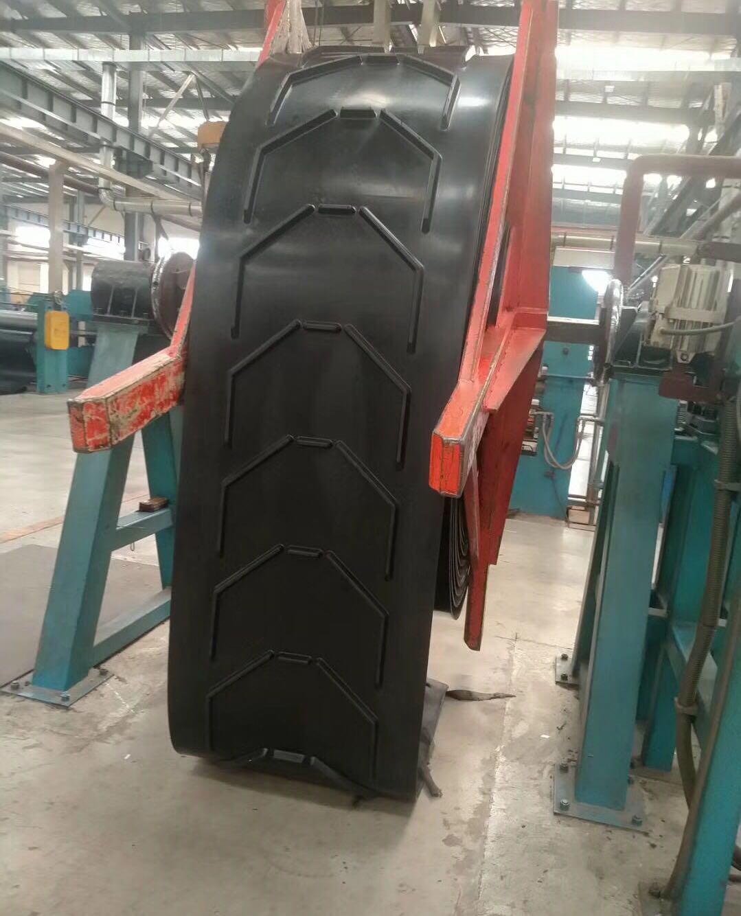 我司生產的花紋輸送帶,使用德國耐磨配方工藝,使用壽命長,接頭采用45°—75°環形硫化斜接,增加接頭部位強度。花紋多樣種類齊全,有20多種花紋可供客戶選擇(可根據用戶需求設計),可供應的花紋輸送帶的花紋高度可以做到30mm,寬度可做到≤2400mm。也可根據客戶的工況條件、使用場景等需求,為您量身定製,為客戶提供專業化設計、定製服務。